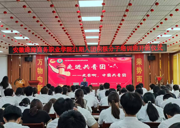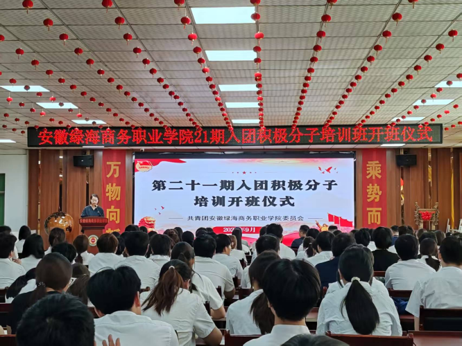 9月22日,安徽绿海商务职业学院第二十一期入团积极分子培训开班仪式顺利举行。行政第二党支部书记、学生处常务副处长、校团委书记朱小明、校团委副书记李红及及其他二级学院的团总支书记出席活动。