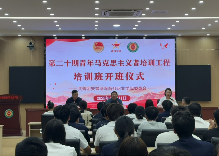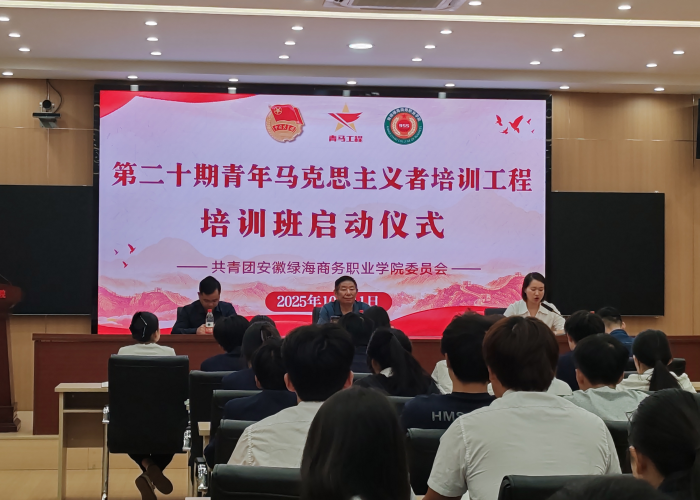 金秋十月,硕果盈枝。2025年10月11日中午12:00,安徽绿海商务职业学院第二十期青年马克思主义者培训工程培训班开班仪式在科创馆举行。党群工作部部长韦永久、行政第二党支部书记、学生处常务副处长兼校团委书记朱小明、校团委副书记李红及各二级学院团总支书记出席仪式,与全体青马学员共同开启一场“铸魂赋能”的青春征程。