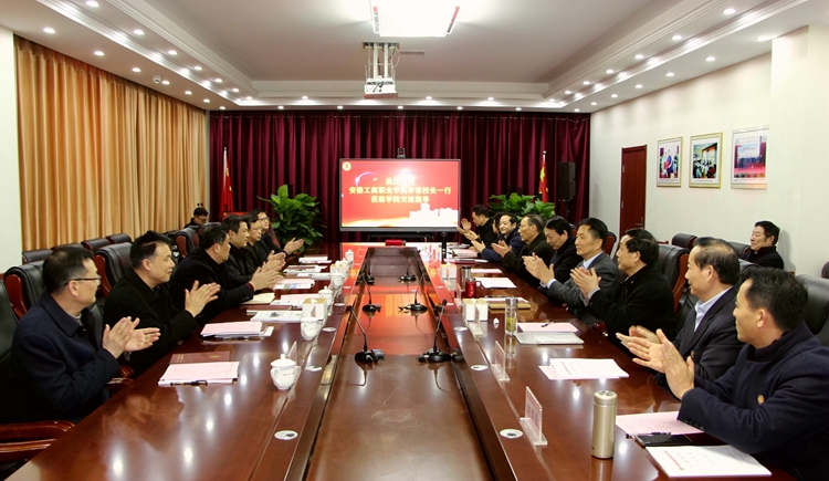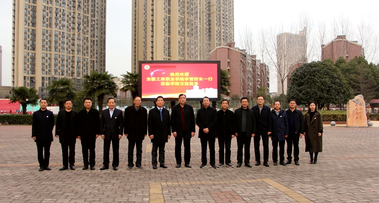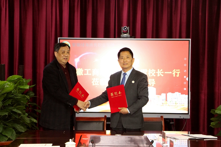 春光明媚,温暖和煦。为增进两校之间友谊,促进两校共享新机遇、共谋新发展,3月2日下午,安徽工商职业学院党委副书记、校长李雪,党委委员、党委副书记陈行,党委委员、纪委书记黄继胜,党委委员、副校长胡捍东,党委委员、副校长陈章奇一行莅临安徽绿海商务职业学院考察交流并签署战略协议。安徽绿海商务职业学院董事长、党委书记陈孝云,督导专员、党委第一书记孙永,原督导专员、党委第一书记江传瑞,副董事长、高建办主任石秀和,党委副书记、纪委书记刘兴杰,党委委员、文化总监张以亭,高建办副主任史锋,院长助理陈艺鸣陪同考察并参加交流会。