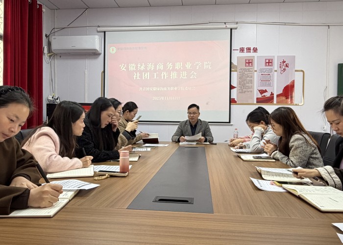 2025年11月12日,安徽绿海商务职业学院社团工作推进会在行政楼121会议室召开。会议首先学习了陈老师国旗下讲话精神关于“全员、全过程、全方位”育人的重要指示精神,特别是其中关于“发挥学生社团育人功能,打造特色校园文化”的明确要求,为本次推进会锚定了发展方向、凝聚了思想共识。此次会议以“强化社团建设、赋能学生成长”为核心,旨在进一步统一思想、明确责任,推动校园社团工作高质量发展。各二级学院党支部书记、团总支书记及校团委全体成员参会。