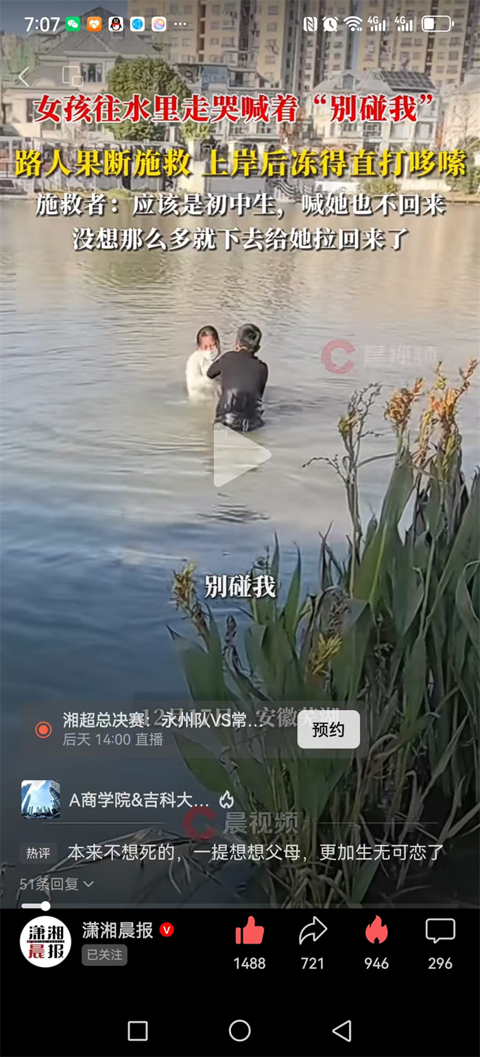 跳进刺骨河水,勇救轻生女孩 绿海校友王贤康,好样的!