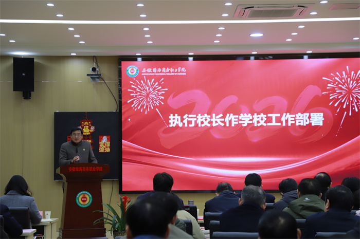 随后,执行校长许信旺作2026年学校工作部署讲话,重点聚焦教学改革、师资建设、产教融合、国际化办学四大关键领域。他指出,教学改革要以“提质增效”为核心,优化课程体系,创新教学方法,强化质量监控;师资队伍要以“强能赋能”为目标,筑牢师德底线,优化队伍结构,健全培养机制;产教融合要服务产业发展,深化校企合作,拓展实践平台;国际化办学要依托姊妹校优势,深化中马合作,拓展合作维度,完善保障体系,打通“高职—本科—硕博”贯通培养通道。