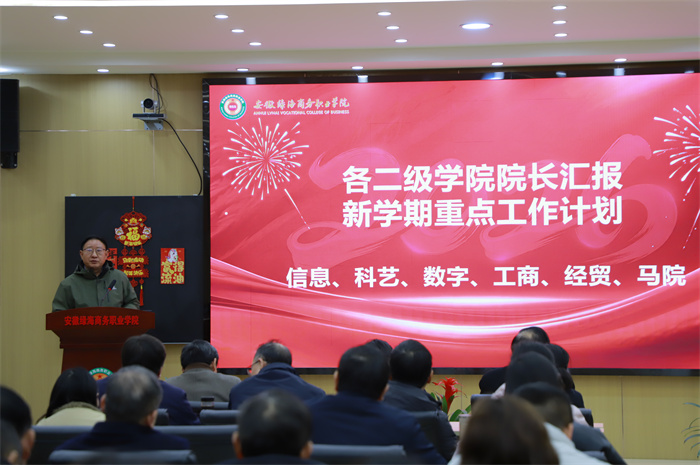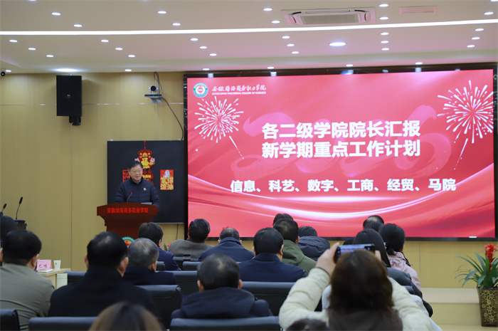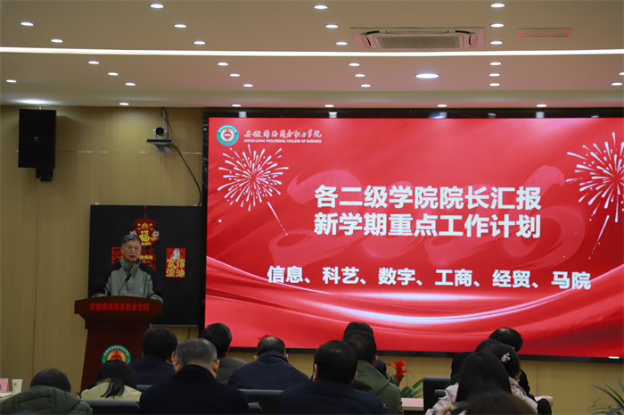 各二级学院负责人就新学工作思路汇报发言。大家紧扣学校战略目标,立足专业特色,分别从深化“AI+”专业建设、推进艺术与科技融合、打造数字电商产教融合基地、强化教学科研与竞赛组织、主动对接新兴产业需求、将“星青年”理念融入思政育人体系等方面亮目标、谈举措、表决心,展现了全校一盘棋、聚力谋发展的良好态势。
