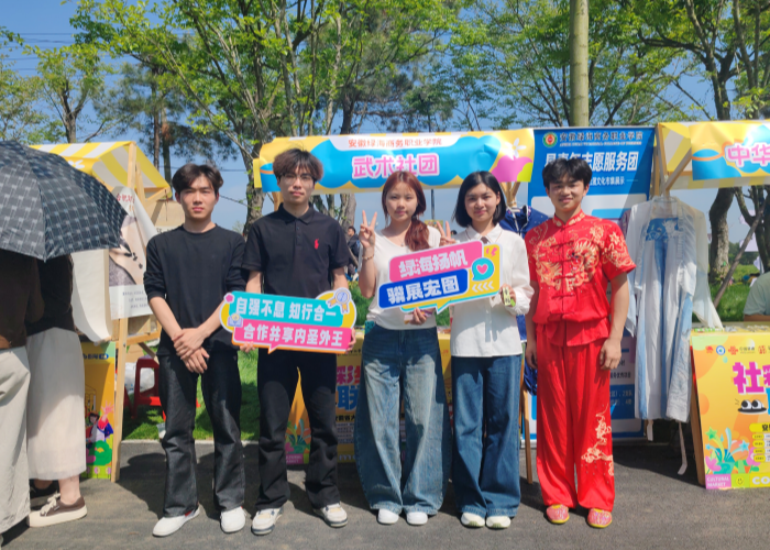为深化全省高校学生社团交流互鉴,丰富校园文化内涵,助力青年学子全面发展,4月18日至19日,“‘社’彩缤纷,‘联’动青春”安徽省大学生社团文化市集在合肥成功举办。我校高度重视此次省级交流活动,精心组织优秀学生社团代表全程参与,在为期两天的活动中亮特色、展成果、促交流、共成长,充分展现了安徽绿海商务职业学院学子昂扬向上的精神风貌与校园文化育人的丰硕成果。