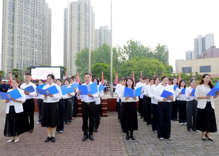 晨曦之中,仪式庄严启幕。国旗护卫队精神昂扬、步履铿锵,护卫着鲜艳的五星红旗稳步入场。全场肃立,目光坚定,伴随着雄壮激昂的《义勇军进行曲》,五星红旗冉冉升起、迎风飘扬,全体师生齐声高唱国歌,深情抒发对祖国的无限热爱与赤诚忠诚,爱国情怀在广场上空久久激荡。