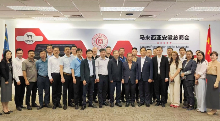 马来西亚安徽总商会翟春潮秘书长、梁允平副会长及马来西亚各界企业家代表围绕教育合作、建材贸易、餐饮文化等领域展开深入交流,详细介绍马来西亚市场特点与发展机遇,就推动相关产业务实合作达成广泛共识。